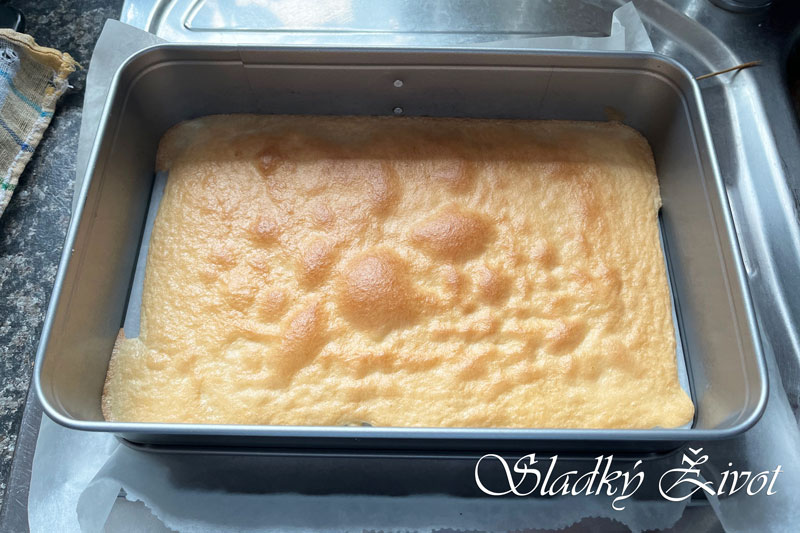 Celé vajcia vyšľaháme s cukrom, primiešame múku a olej. Vylejeme na plech a pečieme cca 10 minút pri 175°C.